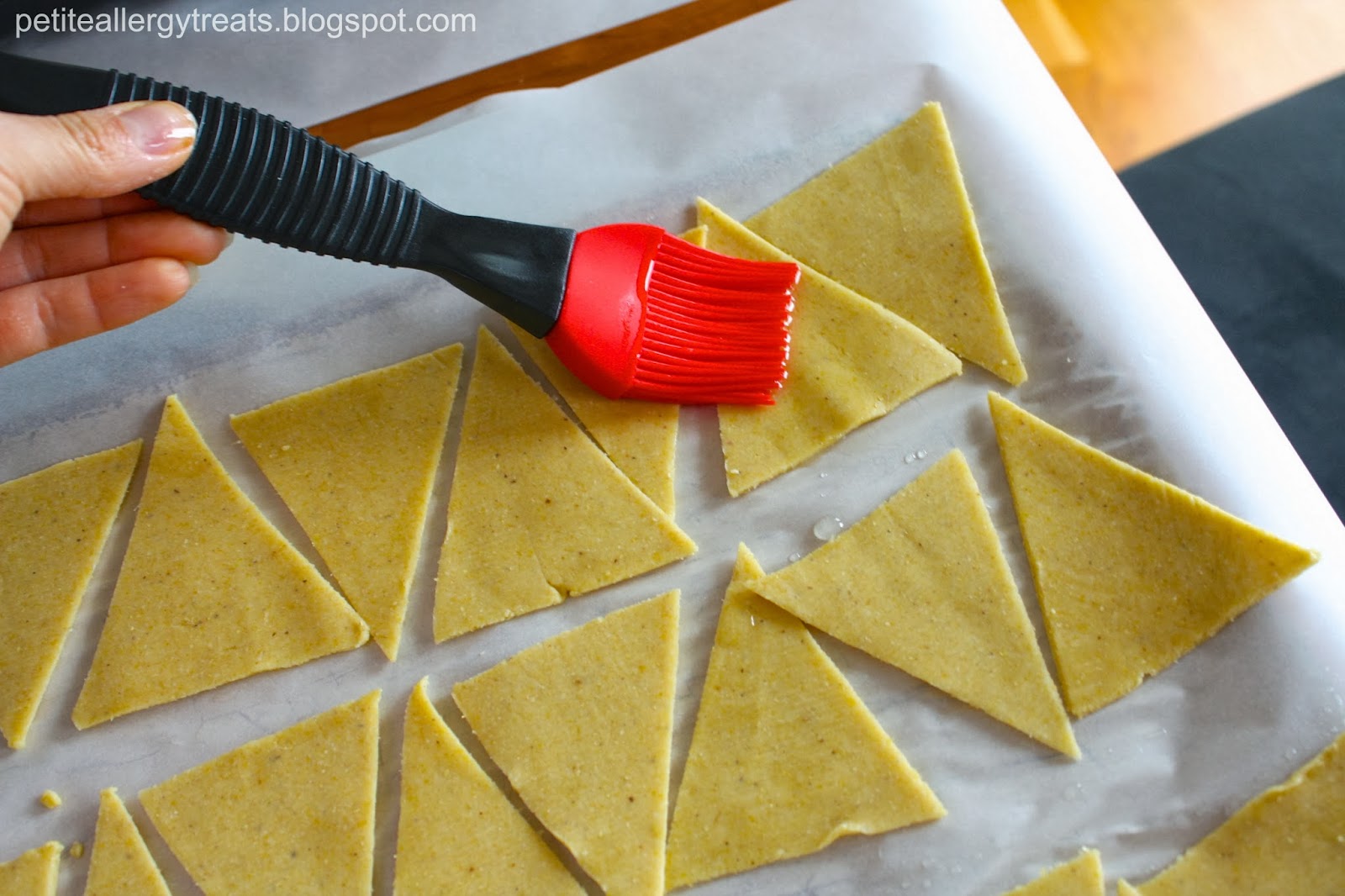 These were easy to cut into triangle shapes and lightly brush with oil. The ingredients are simple and very easy to work with. Just 3 ingredients total. Instead of trying to read labels, just make your own. You can easily make the dough the night before. I’ve also made them as regular tortillas and cut them into the “Frito” chip shape. They’re great to have on hand for entertaining for dips and easy to throw together for nachos.