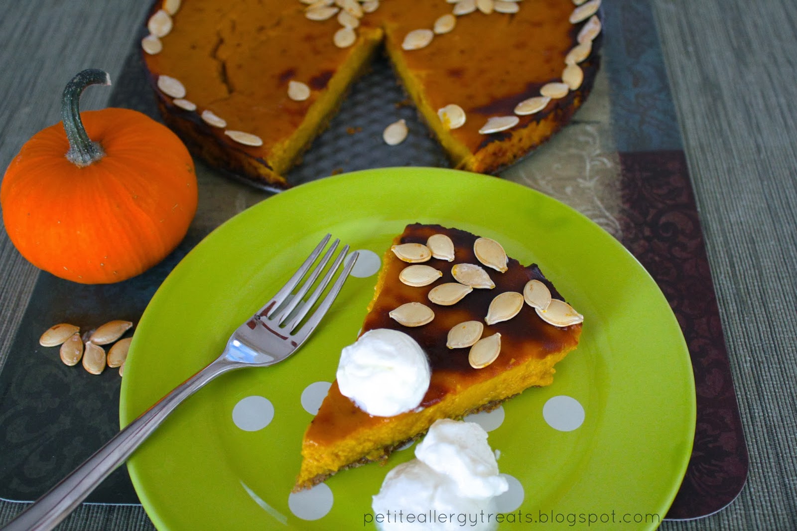 The texture is not as dense as a traditional egg based custard pumpkin pie.  It’s a little more fragile but honestly tastes the same.